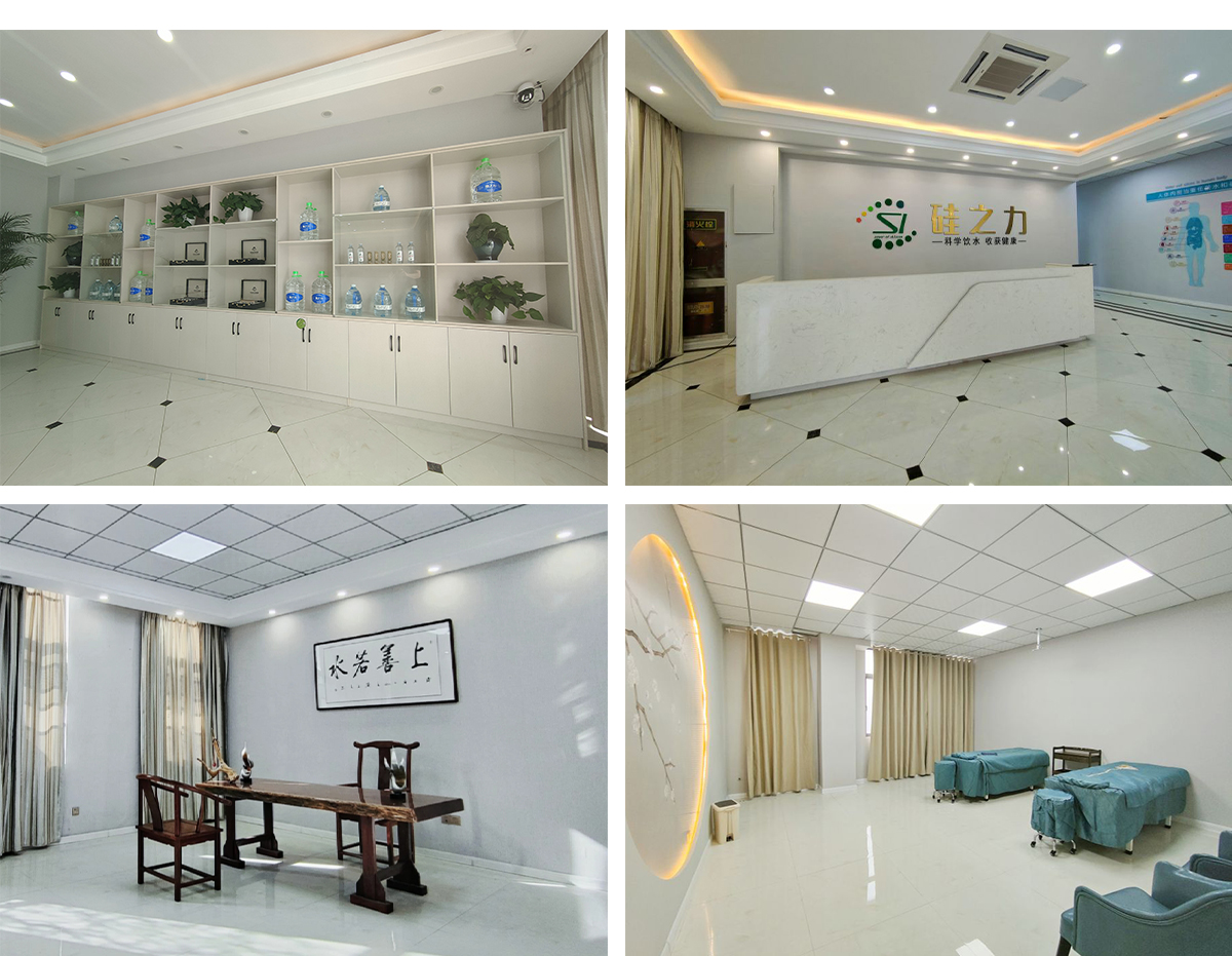 新沂硅之力饮品有限公司是一家致力于传播健康饮水知识,通过科学饮水达到慢病康复,也是国内较早通过偏硅酸泡浴进行理疗的公司。 公司经营产品有细胞组织修护液,矿化杯,瑰之力桶装水,稀思硅宝4L水、小瓶水等多种产品,各产品针对不同群体,采用不同经营模式。 公司本着“同心同德,弘扬中医,康民怡老,普天永泰”的经营理念,响应国家“非药物疗法”,帮助民众养成良好的生活习惯,增强体魄。